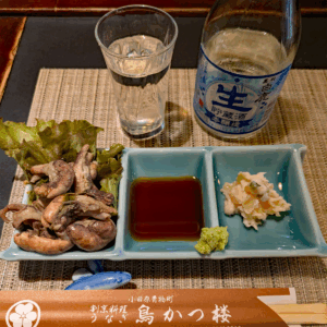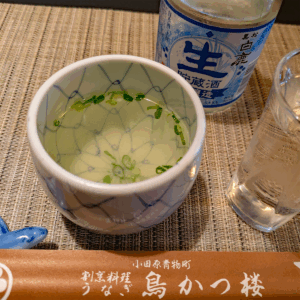 奥のカウンター席に案内されると早々に鶏のスープが出される。これが店名の由来か。お茶ではなくて鶏スープ。この出汁は日本酒に合うこと間違いない。
